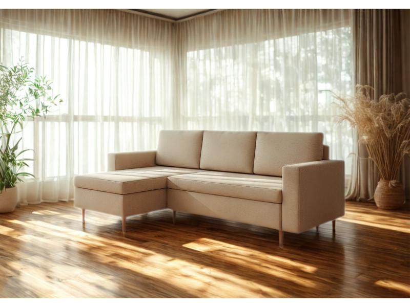 Narożni skandynawski Bever to mebel który, jest doskonałą propozycją dla osób ceniących sobie minimalizm, nowoczesność oraz funkcjonalność.w stylu skandynawskim. Narożnik rozkładany z funkcją spania oraz dodatkową przestrzeń na pościel. Narożnika drewnianych nóżkach.