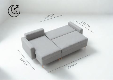 - Narożnik BEVER wyposażamy w wygodną funckję spania o powierzchni 140x200cm.