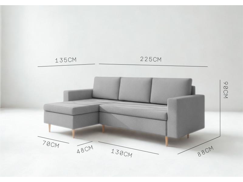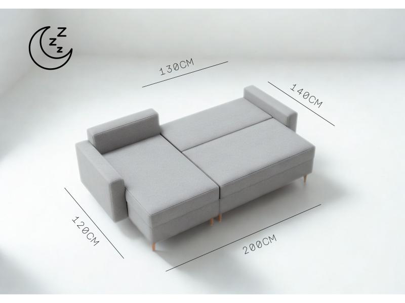 Narożni skandynawski Bever to mebel który, jest doskonałą propozycją dla osób ceniących sobie minimalizm, nowoczesność oraz funkcjonalność.w stylu skandynawskim. Narożnik rozkładany z funkcją spania oraz dodatkową przestrzeń na pościel. Narożnika drewnianych nóżkach.