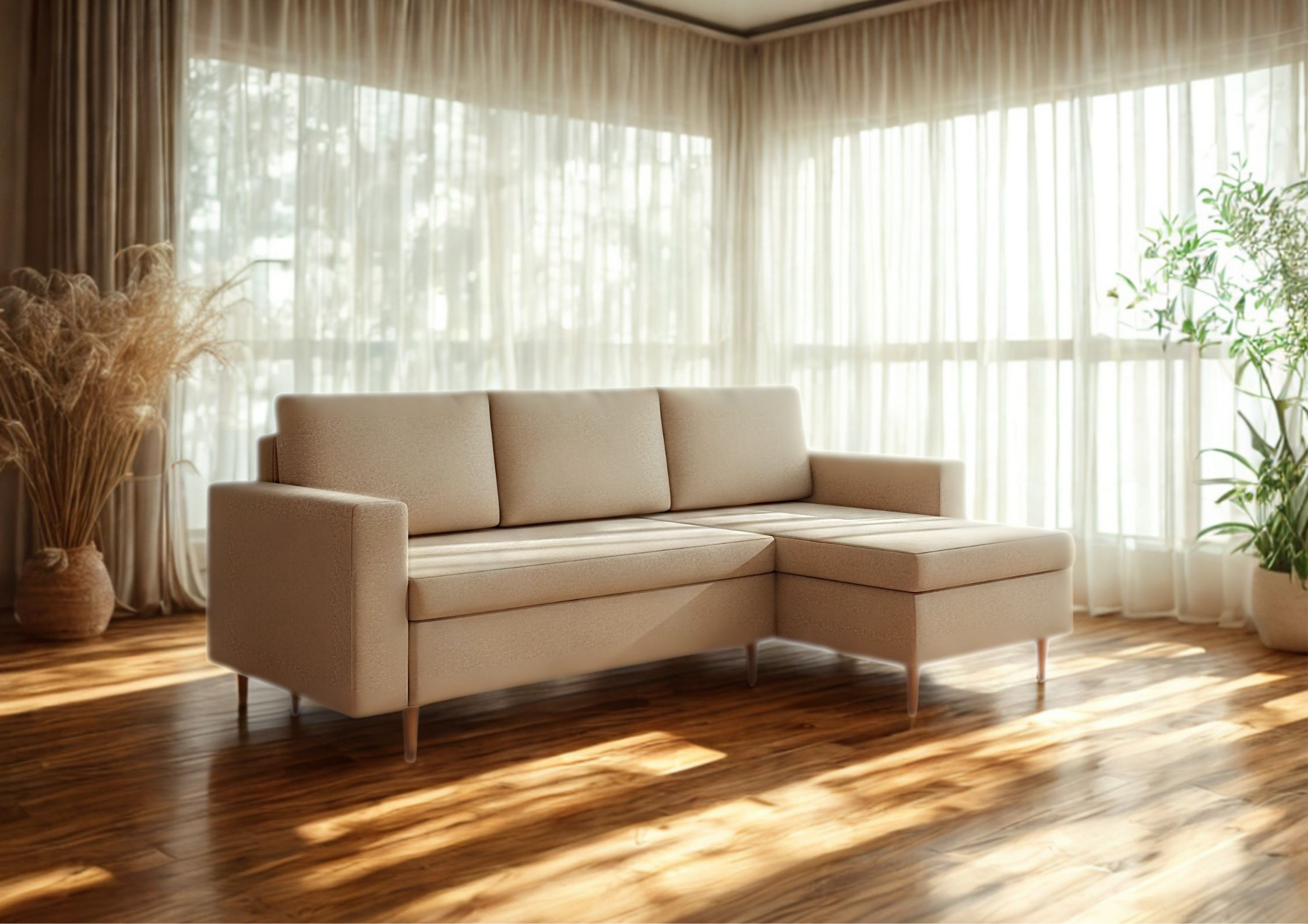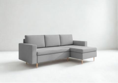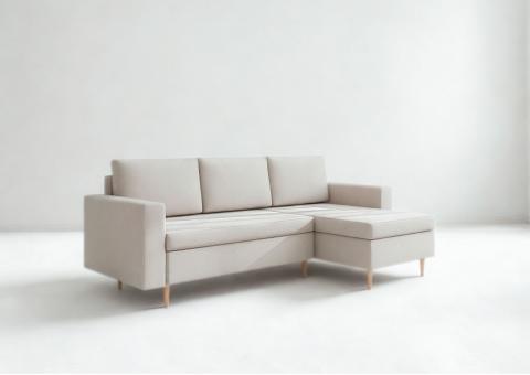 Narożni skandynawski Bever to mebel który, jest doskonałą propozycją dla osób ceniących sobie minimalizm, nowoczesność oraz funkcjonalność. W stylu skandynawskim. Narożnik rozkładany z funkcją spania oraz dodatkową przestrzeń na pościel. Narożnika drewnianych nóżkach.