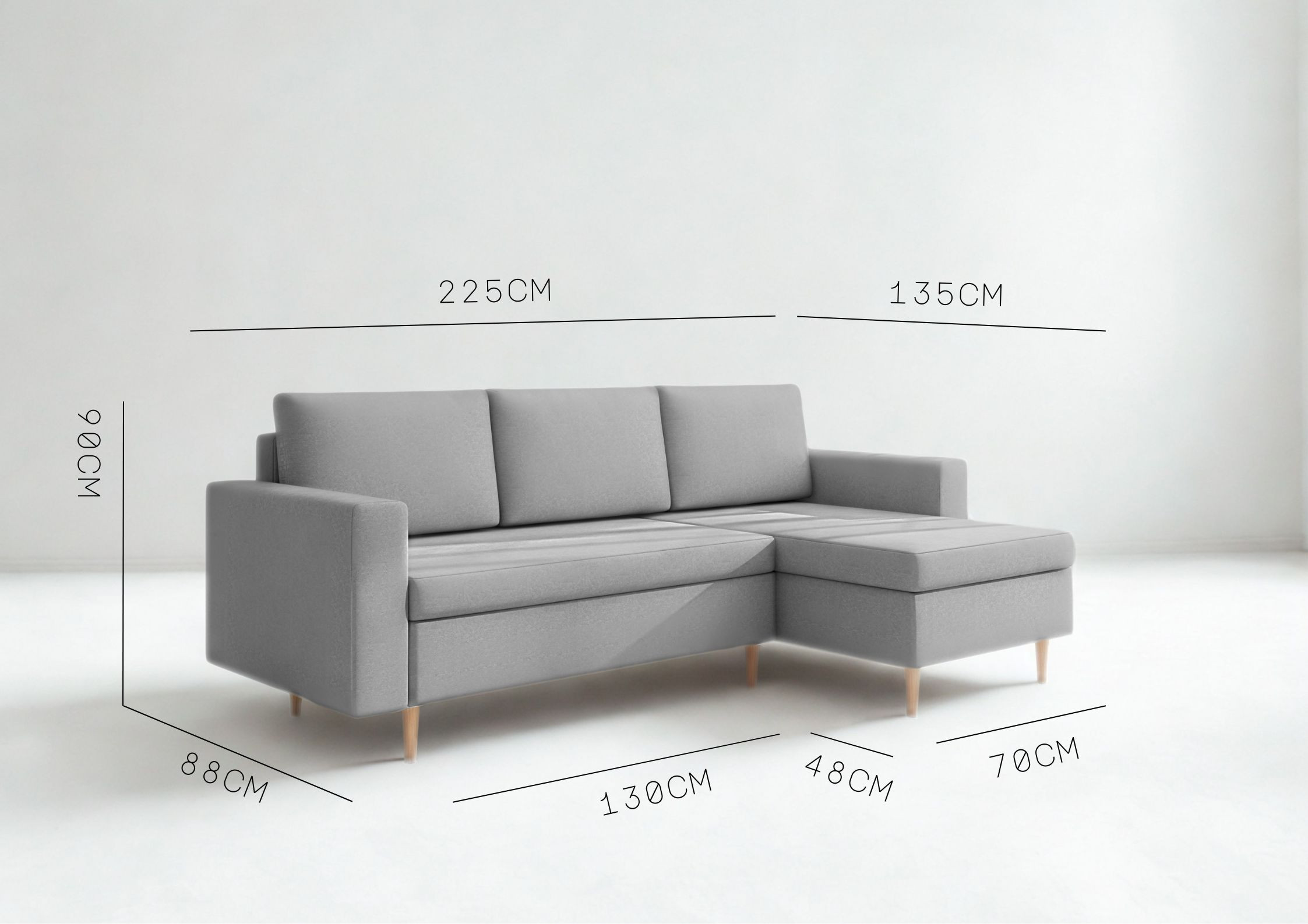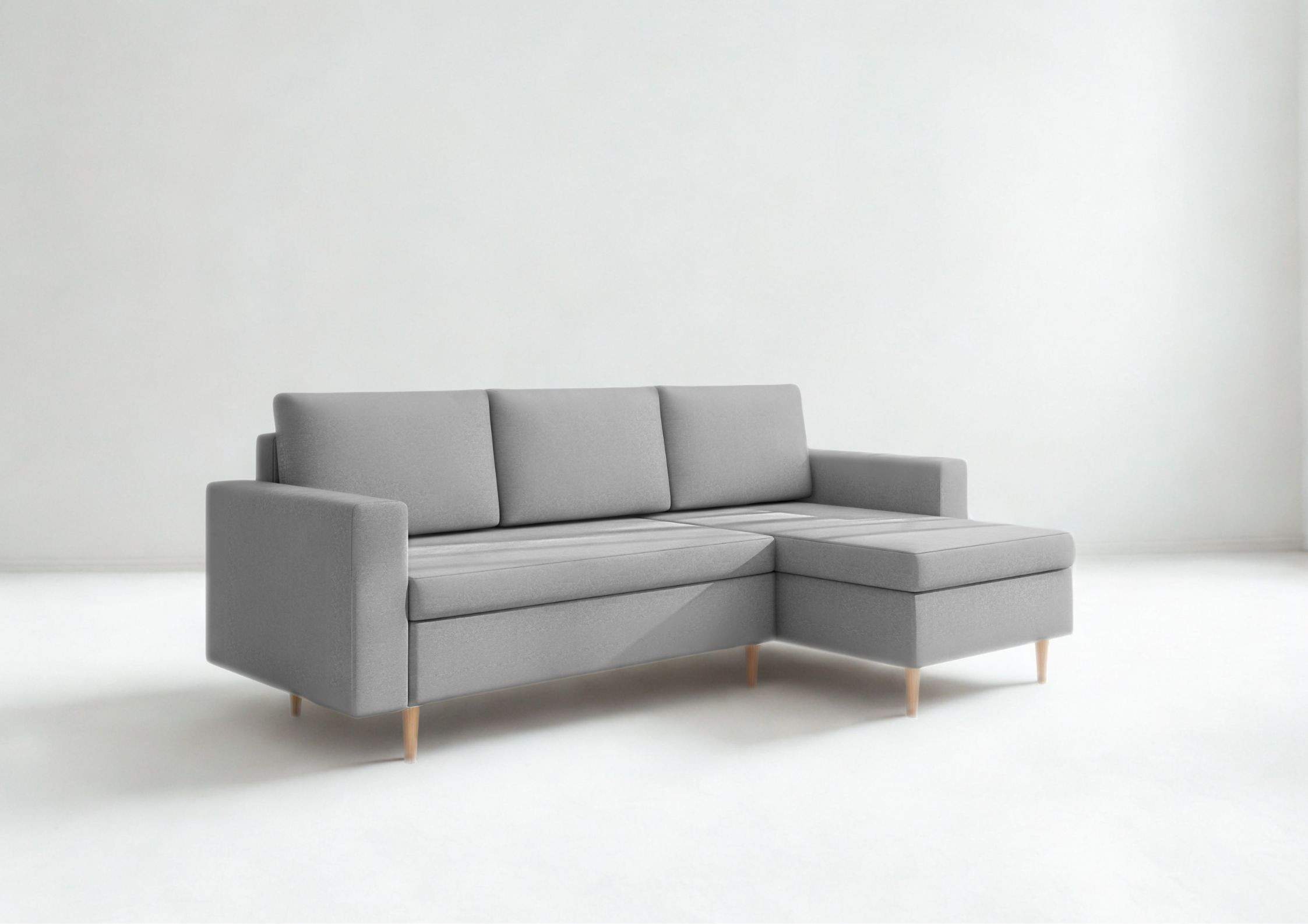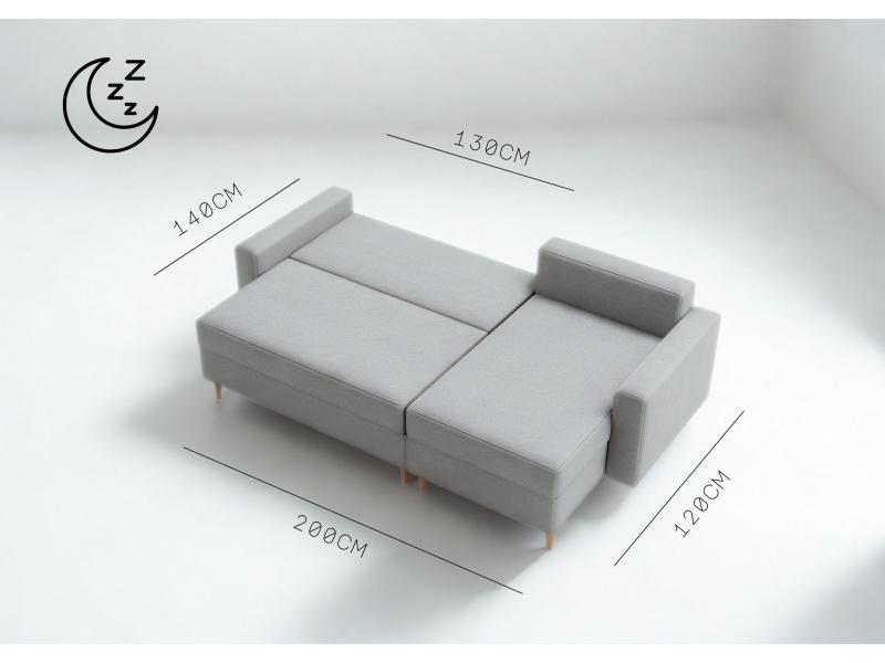 Narożni skandynawski Bever to mebel który, jest doskonałą propozycją dla osób ceniących sobie minimalizm, nowoczesność oraz funkcjonalność w stylu skandynawskim. Narożnik rozkładany wyposażony w funkcję spania oraz dodatkową przestrzeń na pościel. Narożnik drewnianych nóżkach.