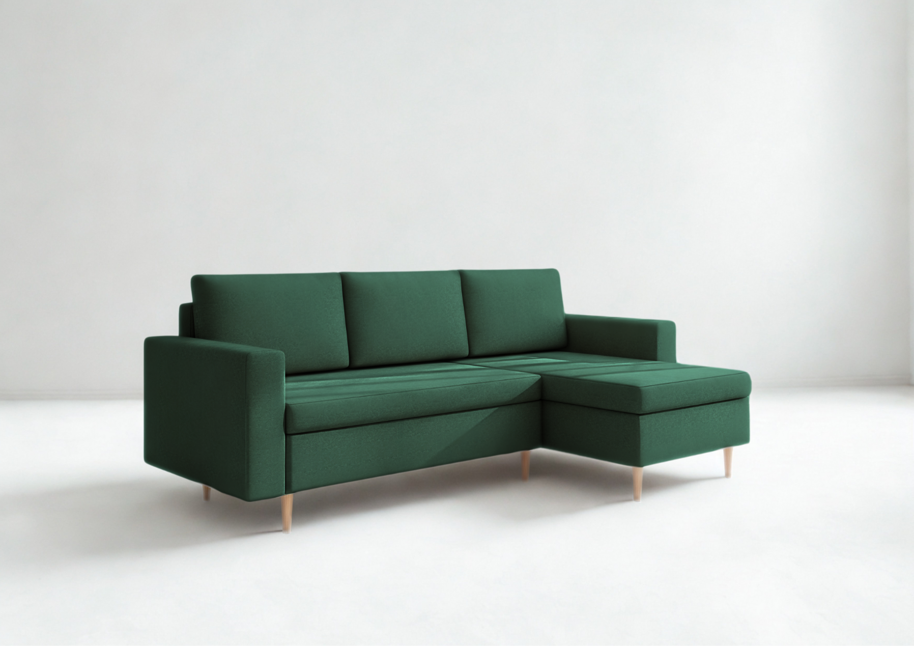 ⭐️Narożnik Rozkładany Prawostronny BEVER Zielony Funkcja Spania Schowek Salon