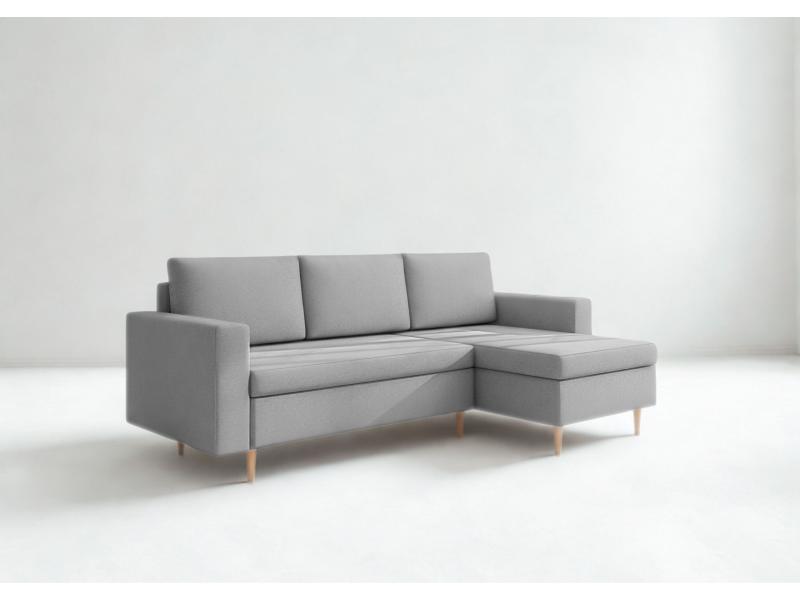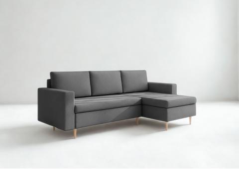 Narożni skandynawski Bever to mebel który, jest doskonałą propozycją dla osób ceniących sobie minimalizm, nowoczesność oraz funkcjonalność. W stylu skandynawskim. Narożnik rozkładany z funkcją spania oraz dodatkową przestrzeń na pościel. Narożnika drewnianych nóżkach.