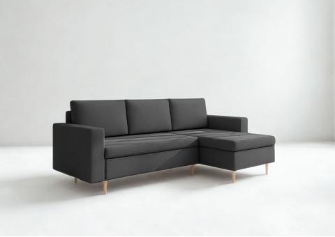 - Narożnik rozkładany z funkcją spania, który idealnie nada się zarówno do małego pokoju w bloku jak i w większych pomieszczeniach.
