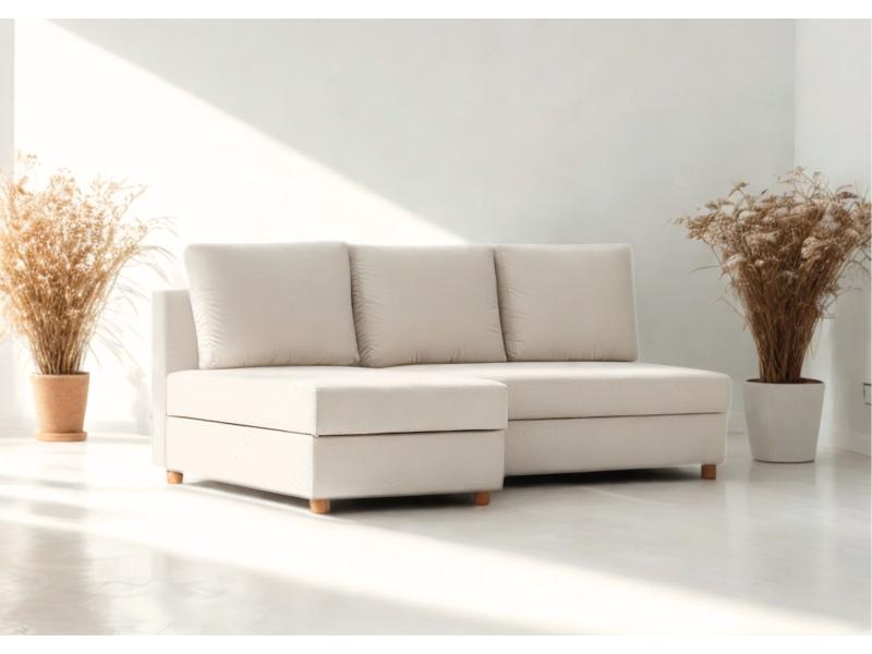 Narożnik Rozkładany Lewostronny ONYX Beżowy Funkcja Spania Schowek Salon