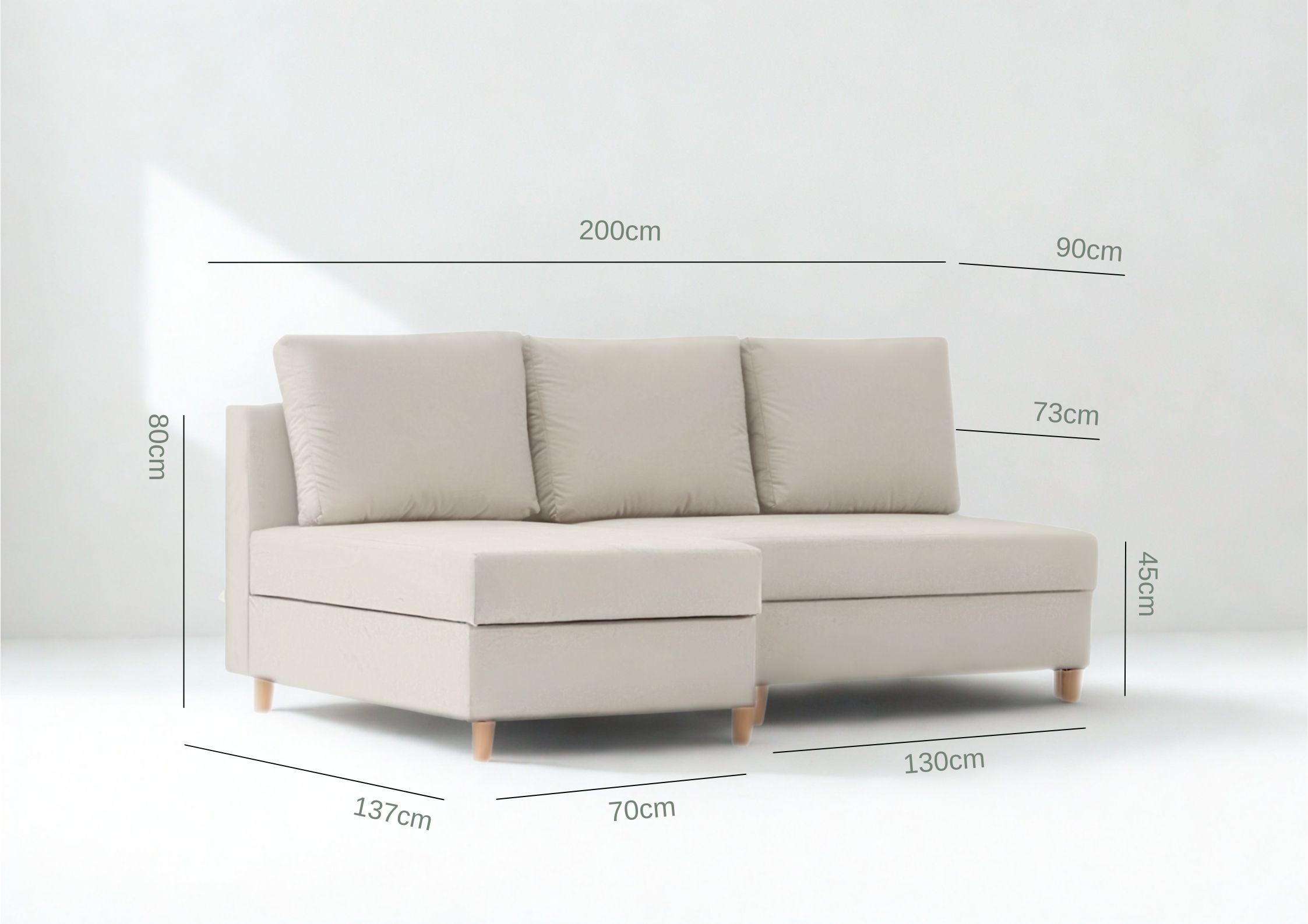 Dane techniczne: Narożnik Rozkładany Lewostronny ONYX Beżowy Funkcja Spania Schowek Salon