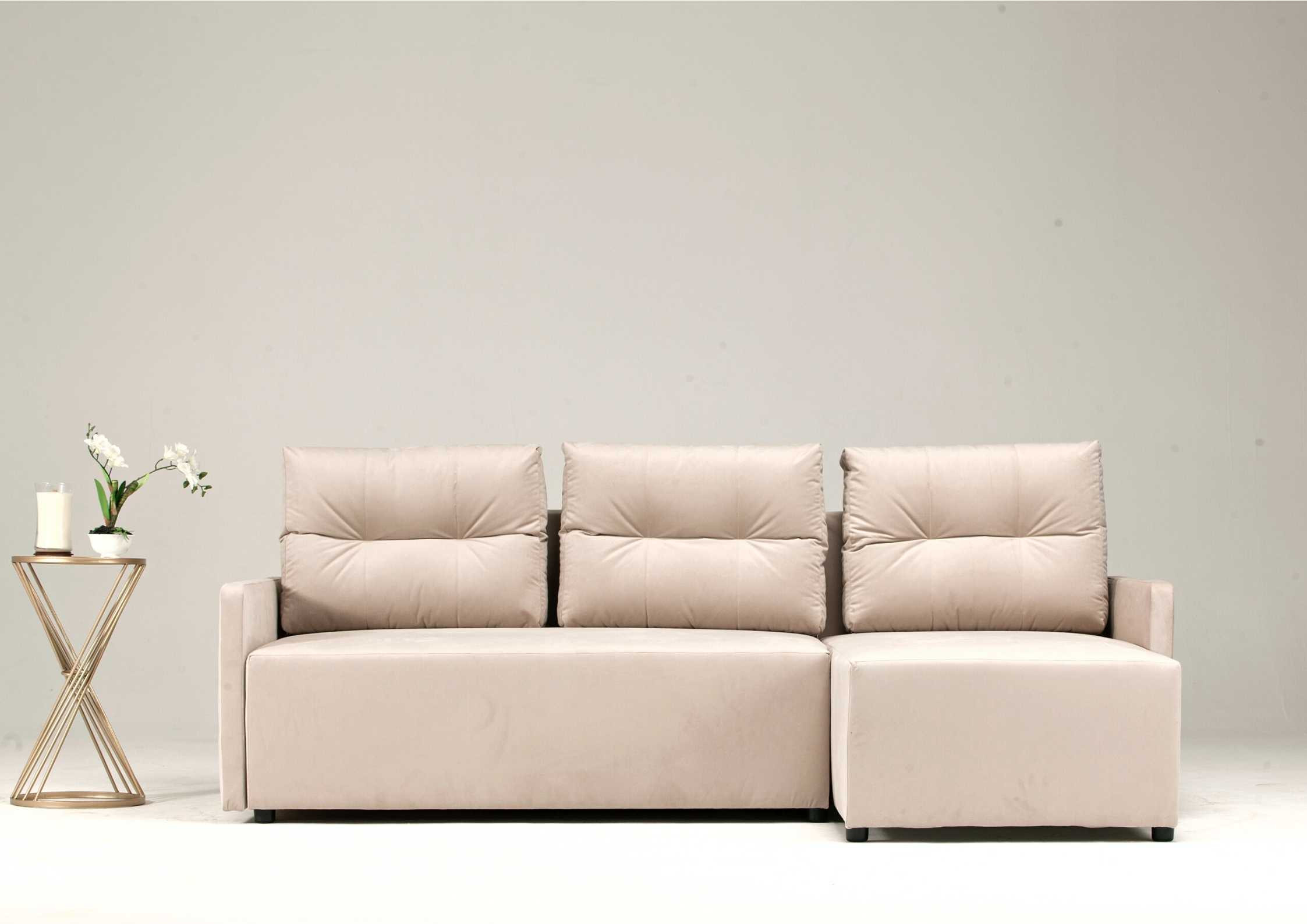 Dane techniczne: Narożnik Rozkładany Prawostronny VERO Beżowy Funkcja Spania Schowek Salon