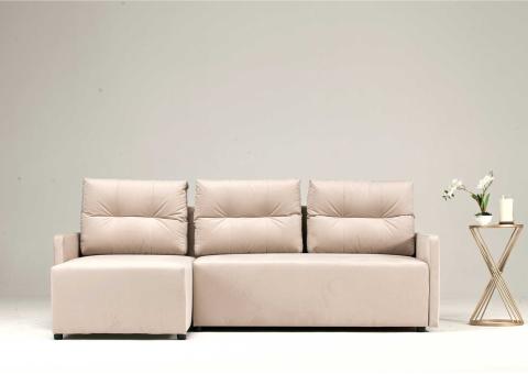 ⭐️Narożnik Rozkładany Lewostronny VERO Beżowy Funkcja Spania Schowek Salon