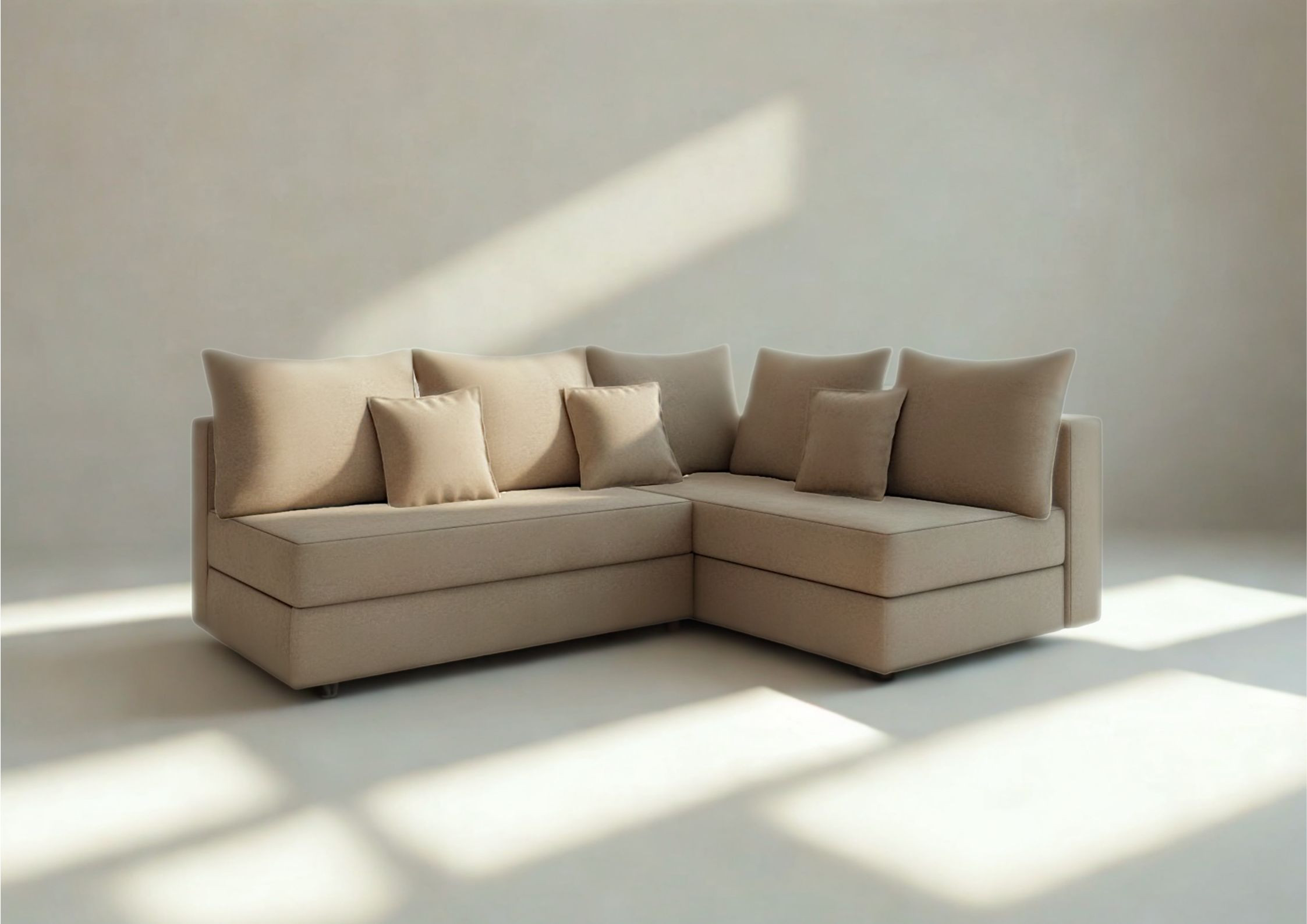⭐️Narożnik Rozkładany Prawy PACO L Beżowy Funkcja Spania 2 Schowki Salon
