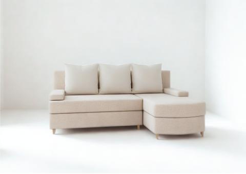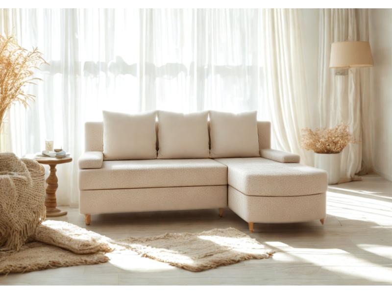 ⭐️Narożnik HELIOS Beżowy Rozkładany Funkcja Spania Mały 200x150cm Otomana