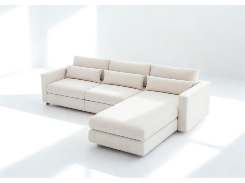 Narożnik Rozkładany Prawostronny SUNSET Beżowy Funkcja Spania Salon