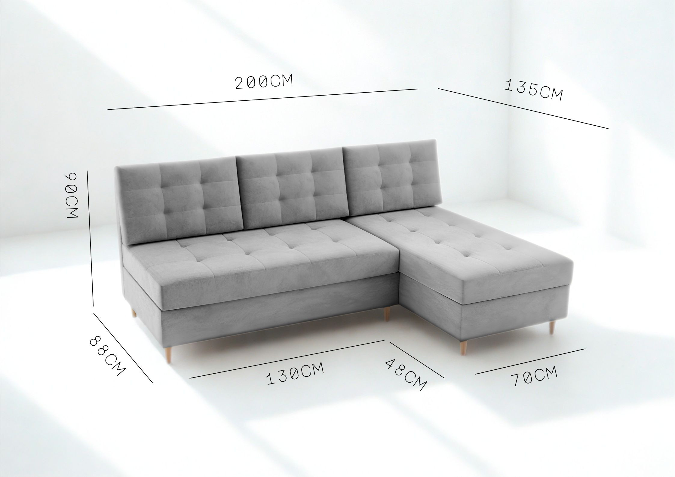 ☑️PERO – Narożnik z Łatwym Systemem Rozkładania i Dwoma Pojemnikami na Pościel