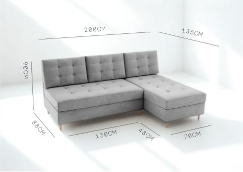- Narożnik rozkładany z funkcją spania, który idealnie nada się zarówno do małego pokoju w bloku jak i w większych pomieszczeniach.