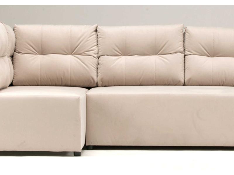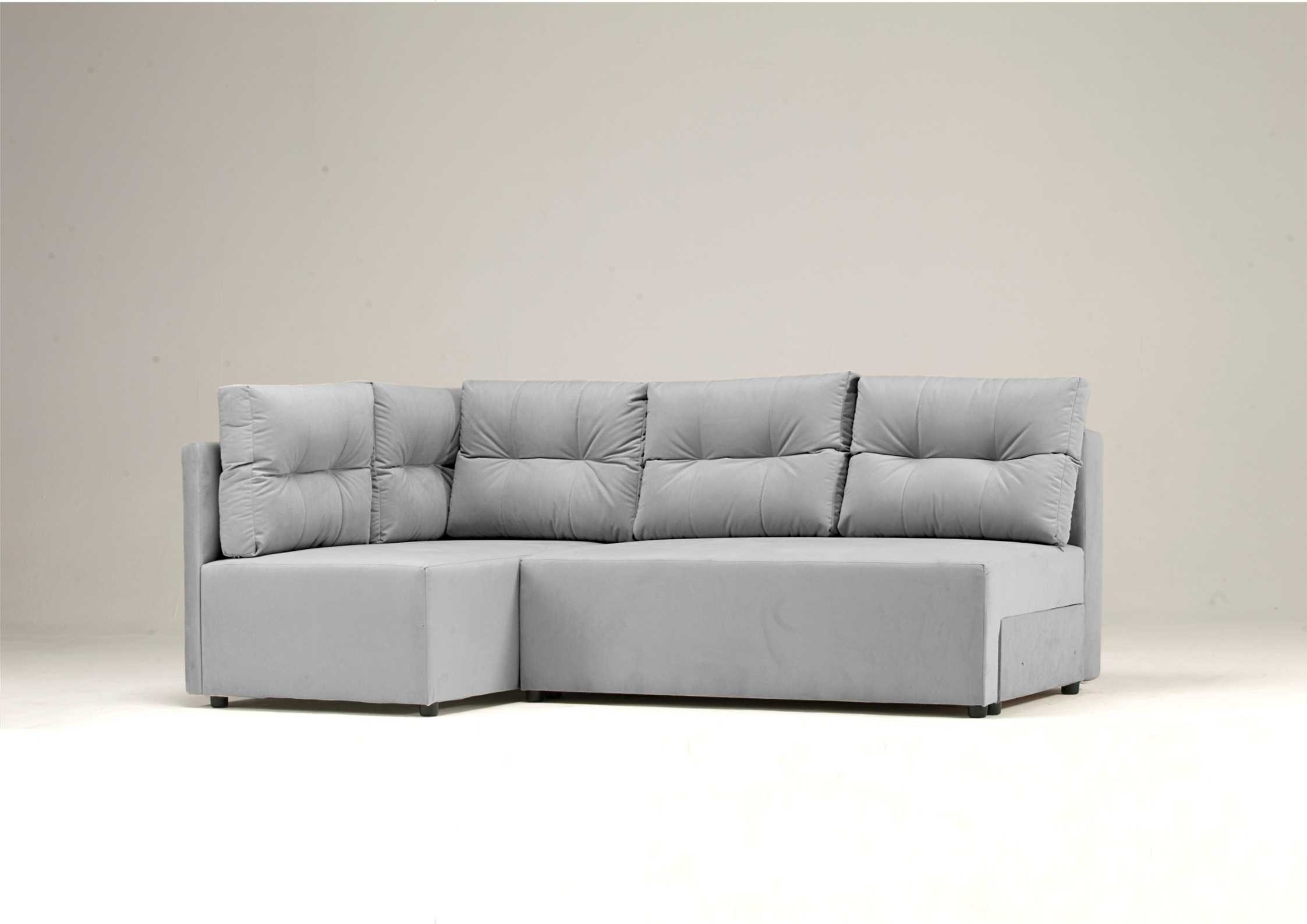 Kanapa narożna lewa produkowana w wymiarze 208x140cm jest meblem idealnym dla małych pomieszczeń. Rogówka rozkłada się do funkcji spania, posiada 1 pojemnik na pościel pod powierzchnią siedziskową. Narożnik wyposażyliśmy w 5 dużych pikowanych poduszek, które od strony ściany mają również podporę, by zapobiegać jej brudzeniu.