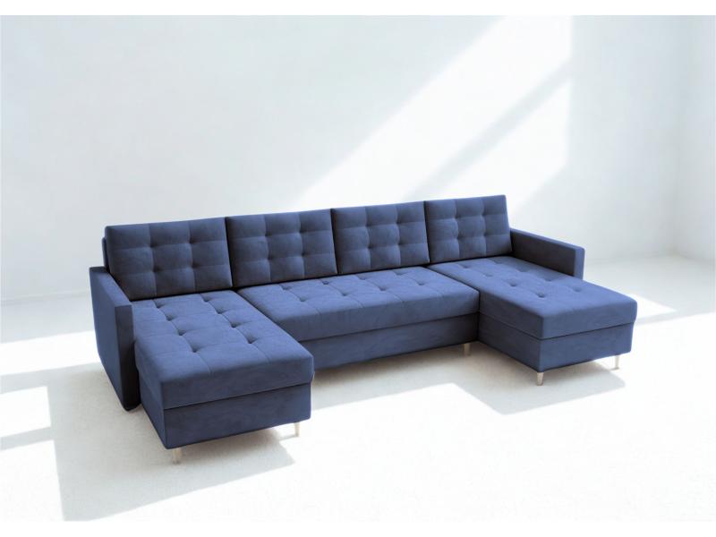 ⭐️Narożnik VIDO U Granatowy Rozkładany Funkcja Spania 3 Schowki Salon Welur