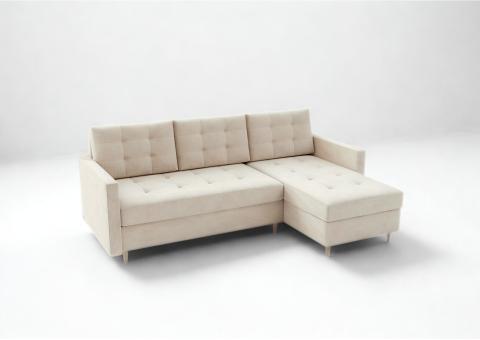 ⭐️Narożnik Rozkładany Prawostronny VIDO Beżowy Funkcja Spania Pikowany