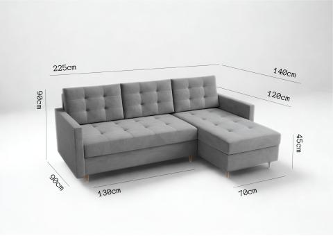 Prawostronny narożnik VIDO to harmonijne połączenie wysokiej funkcjonalności i uniwersalnego designu, dopasowanego do różnych stylów wnętrz – od nowoczesnych, przez skandynawskie, aż po klasyczne aranżacje. Mebel został wyposażony w funkcję spania, zapewniającą komfortowy wypoczynek na co dzień, oraz dwa pojemne schowki na pościel, które pomagają utrzymać porządek i maksymalnie wykorzystać przestrzeń. Sprężyny bonell na całej powierzchni spania gwarantują trwałość i wygodę użytkowania, a dekoracyjne pikowania i poduszki oparciowe nadają całości elegancki, ponadczasowy charakter. Dzięki przemyślanej formie narożnik VIDO doskonale sprawdzi się zarówno w mniejszych pomieszczeniach, jak i w przestronnych salonach.