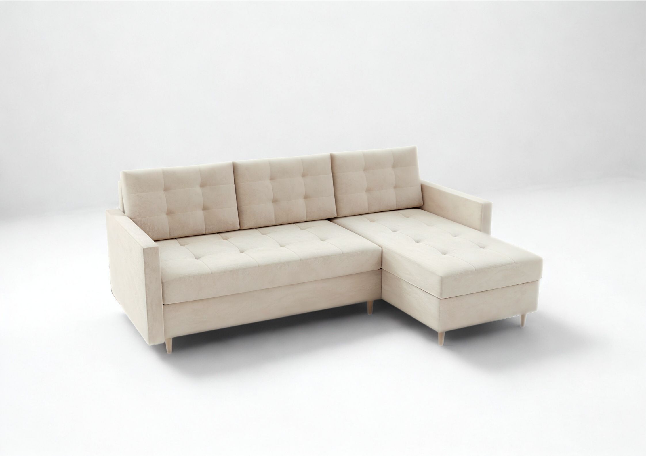 Narożnik Rozkładany Prawostronny VIDO Beżowy Funkcja Spania Pikowany
