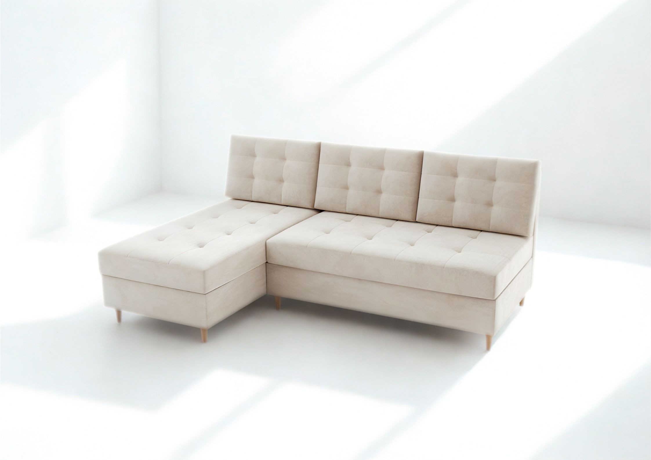 ⭐️Narożnik Rozkładany Lewostronny PERO Beżowy Funkcja Spania Salon