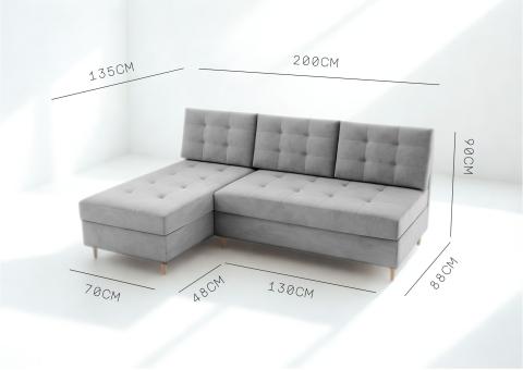 Narożnik Pero to mebel z serii, która oprócz funkcji spania oraz wyposażenia w dwa pojemniki na pościel zachwyca swoim designem. Pero to seria mebli inspirowana stylem skandynawskim z nutą elegancki. Oprócz ozdobnych poduszek opariowych, które stanowią wolny element mebel posiada pikowane siedzisko, które nadaje wyjątkowego stylu. Narożnik Pero sprawdzi się świetnie w pomieszczeniach o mniejszej powierzchni, jako narożnik do małego salonu z funkcją spania.