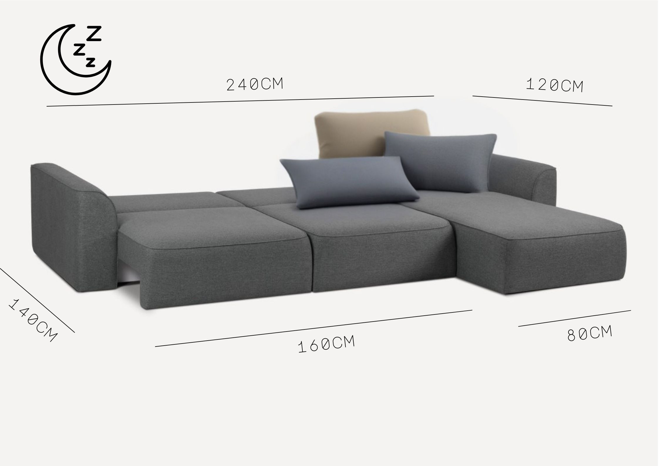 - Narożnik rozkładana KOMA posiada jedną z najwygodniejszych funkcji spania dostępnych na rynku.