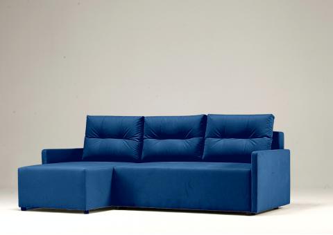 Dane techniczne: Narożnik Rozkładany Lewostronny VERO Granatowy Funkcja Spania Schowek Salon
