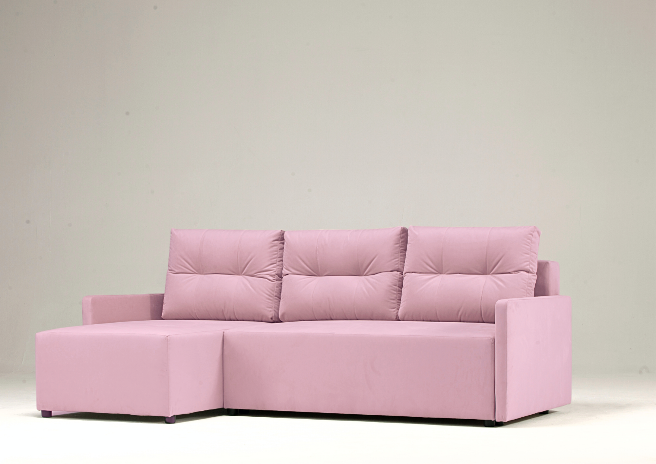 Dane techniczne: Narożnik Rozkładany Lewostronny VERO Różowy Funkcja Spania Schowek Salon