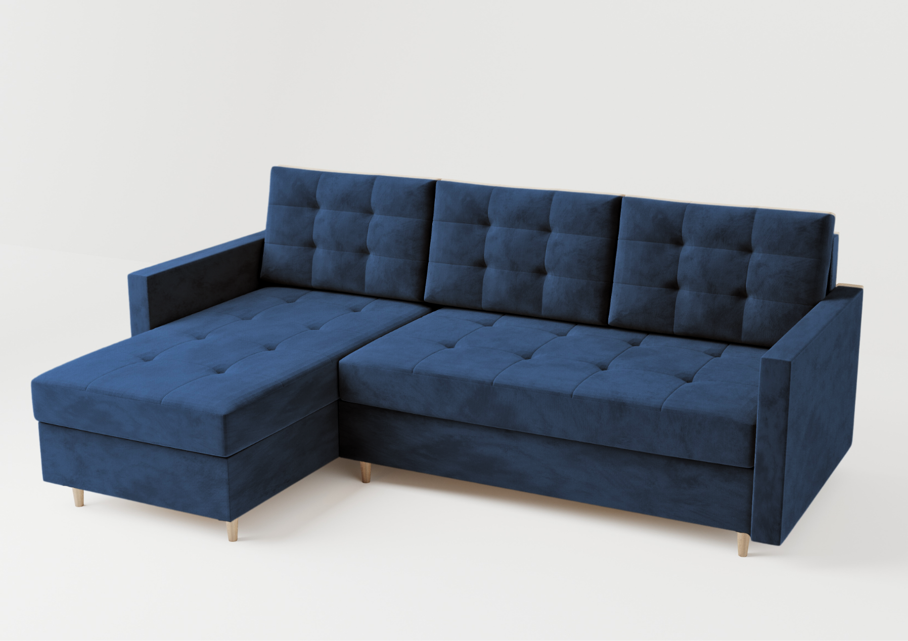 Dane techniczne: Narożnik Rozkładany Lewostronny VIDO Granatowy Funkcja Spania Pikowany
