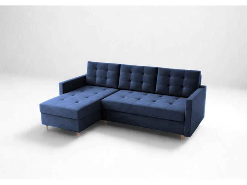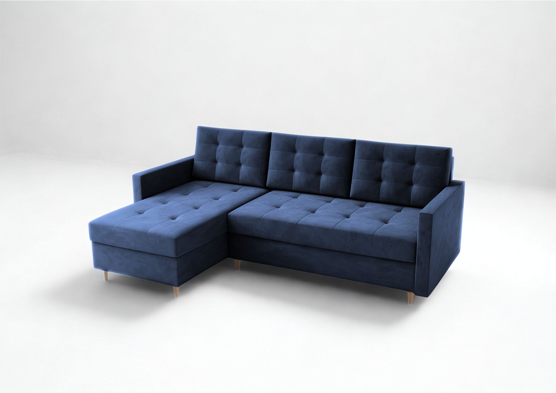 Narożnik Rozkładany Lewostronny VIDO Granatowy Funkcja Spania Pikowany