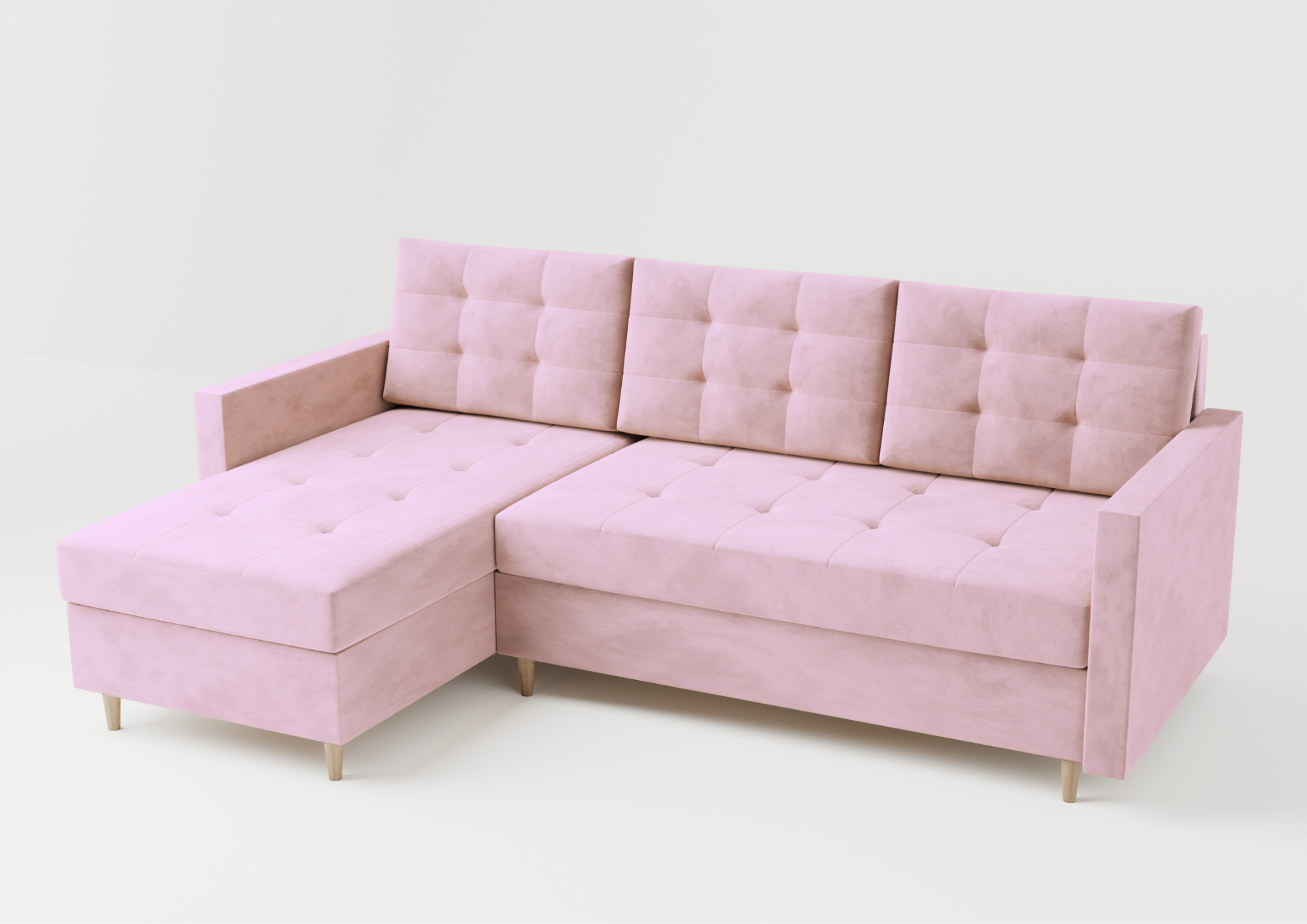 Dane techniczne: Narożnik Rozkładany Lewostronny VIDO Różowy Funkcja Spania Pikowany