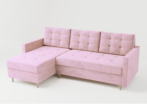 Narożnik Rozkładany Lewostronny VIDO Różowy Funkcja Spania Pikowany