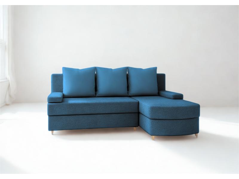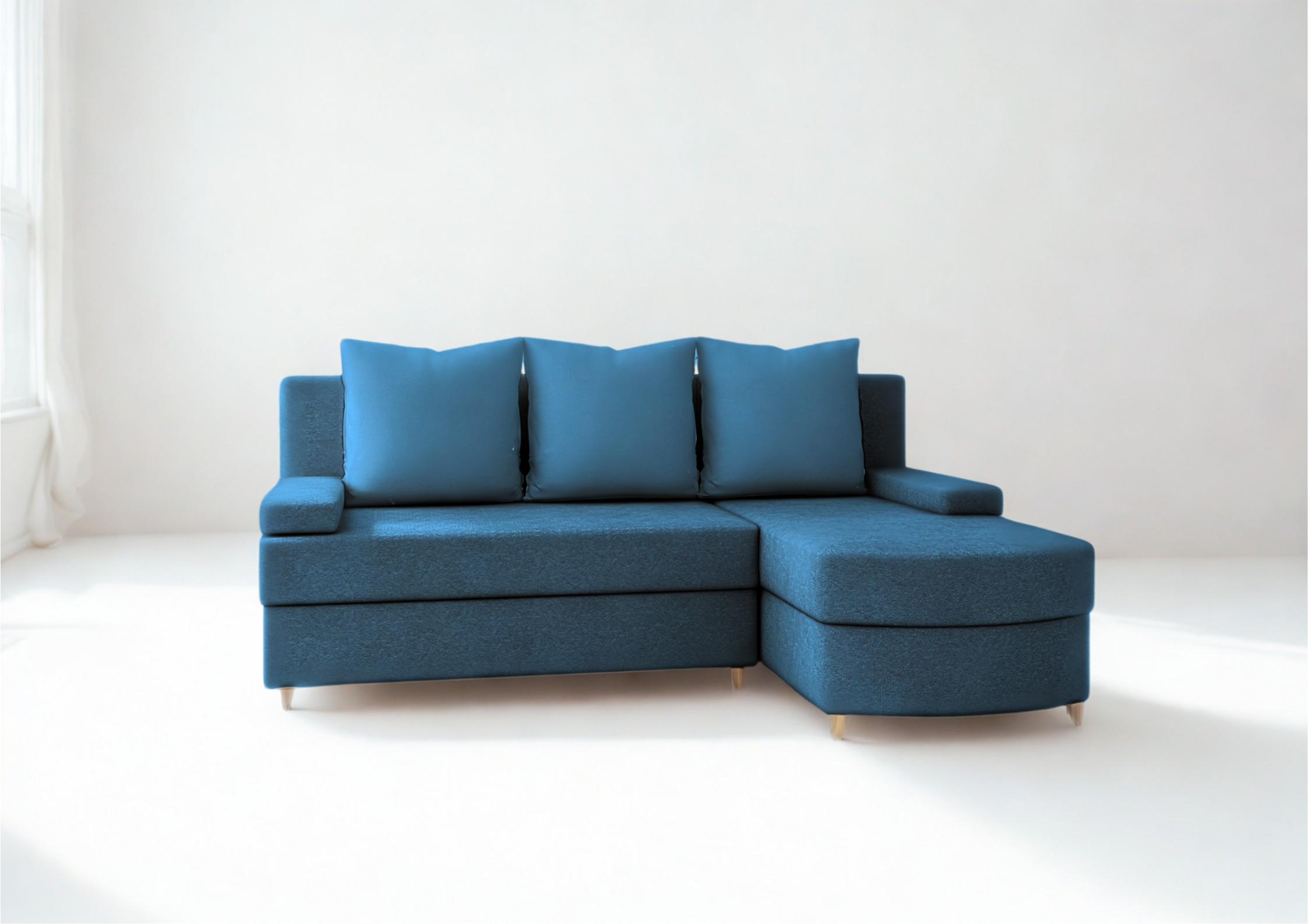 - Narożnik rozkładany z funkcją spania, który idealnie nada się zarówno do małego pokoju w bloku jak i w większych pomieszczeniach.