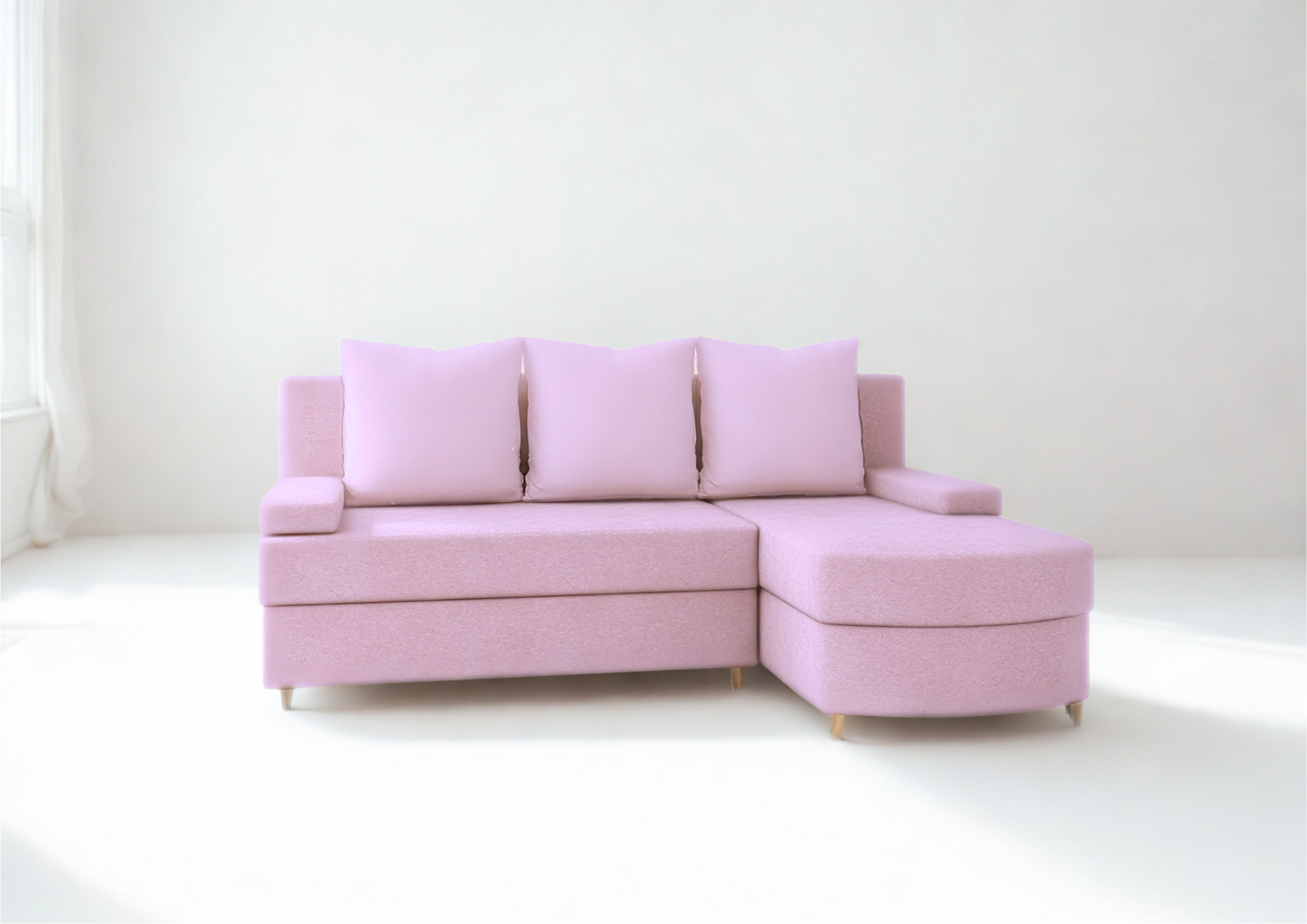 Narożnik Rozkładany Prawostronny HELIOS Różowy Funkcja Spania Salon