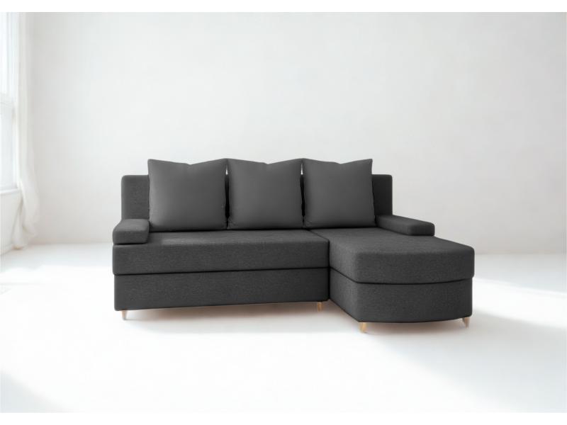 Narożnik Rozkładany Prawostronny HELIOS Czarny Funkcja Spania Salon