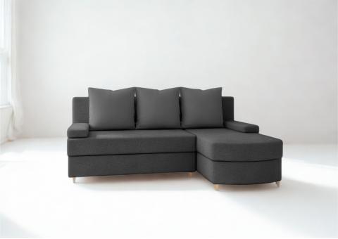 - Narożnik rozkładany z funkcją spania, który idealnie nada się zarówno do małego pokoju w bloku jak i w większych pomieszczeniach.