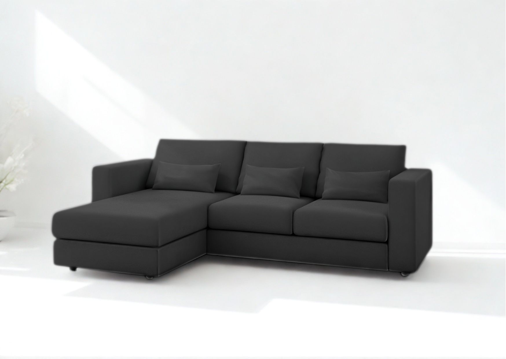 Narożnik Rozkładany Lewostronny REALITY Czarny Funkcja Spania Nowoczesny