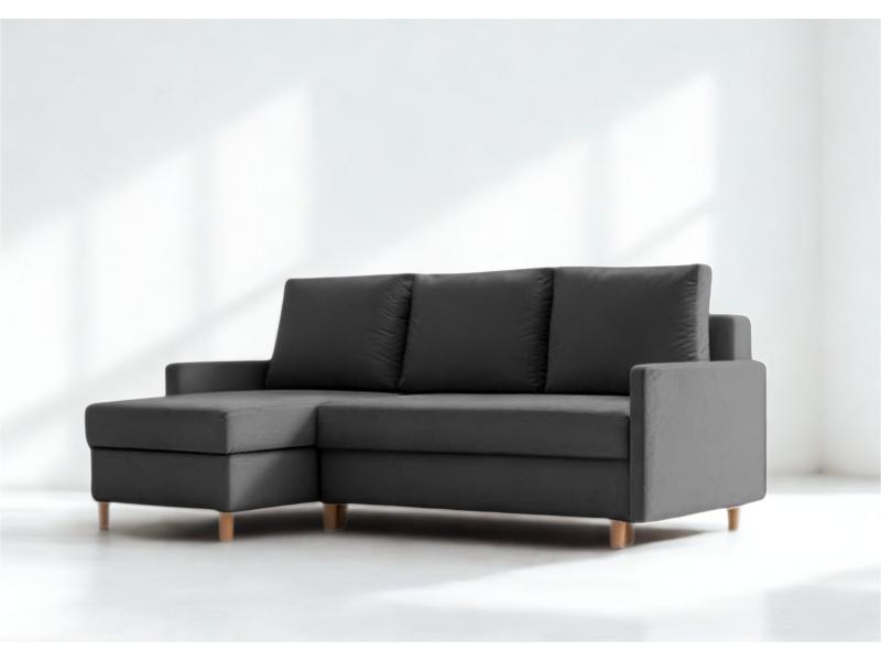 Narożnik Rozkładany Lewostronny AROSA Grafitowy Funkcja Spania Schowek Salon