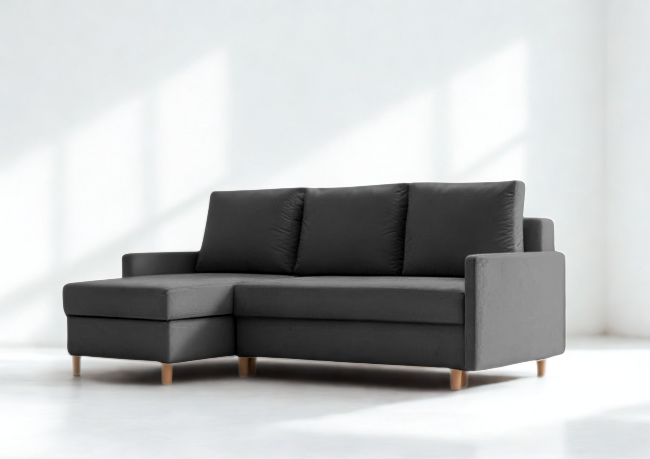 Dane techniczne: Narożnik Rozkładany Lewostronny AROSA Grafitowy Funkcja Spania Schowek Salon
