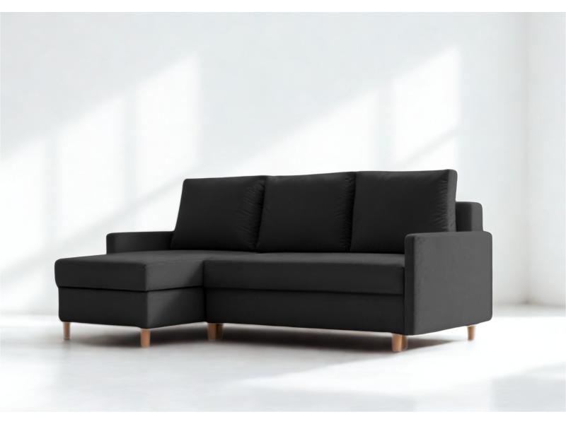 Narożnik Rozkładany Lewostronny AROSA Czarny Funkcja Spania Schowek Salon