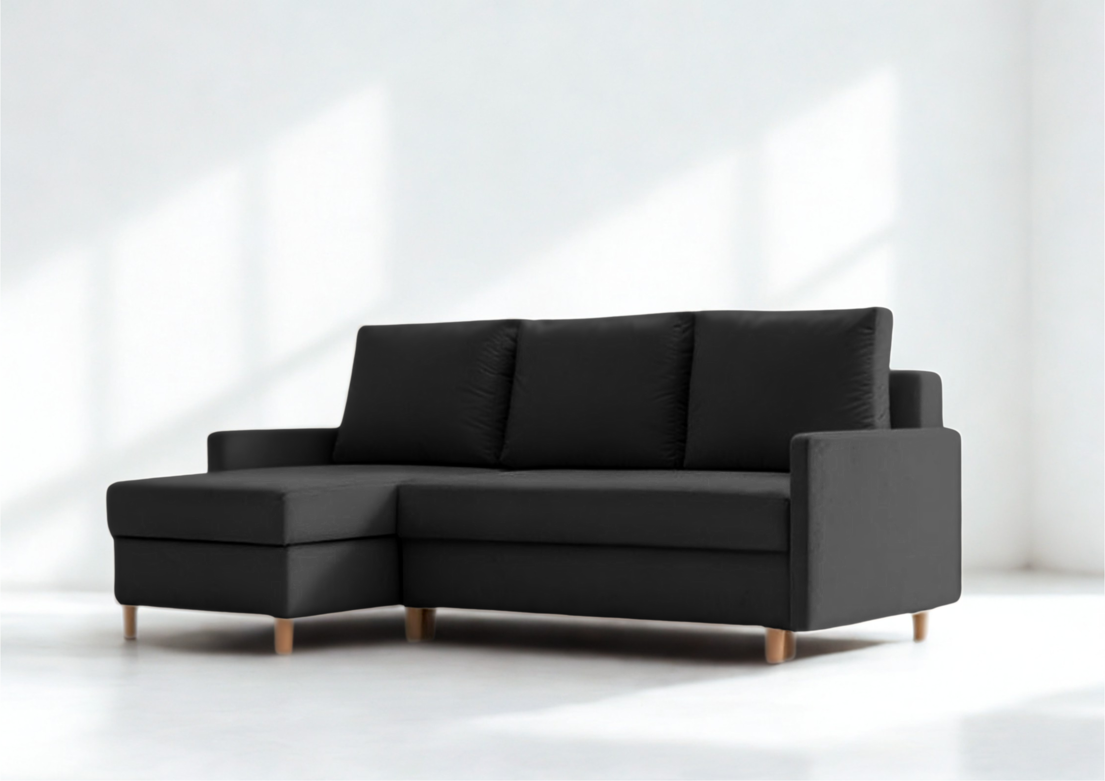 Dane techniczne: Narożnik Rozkładany Lewostronny AROSA Czarny Funkcja Spania Schowek Salon