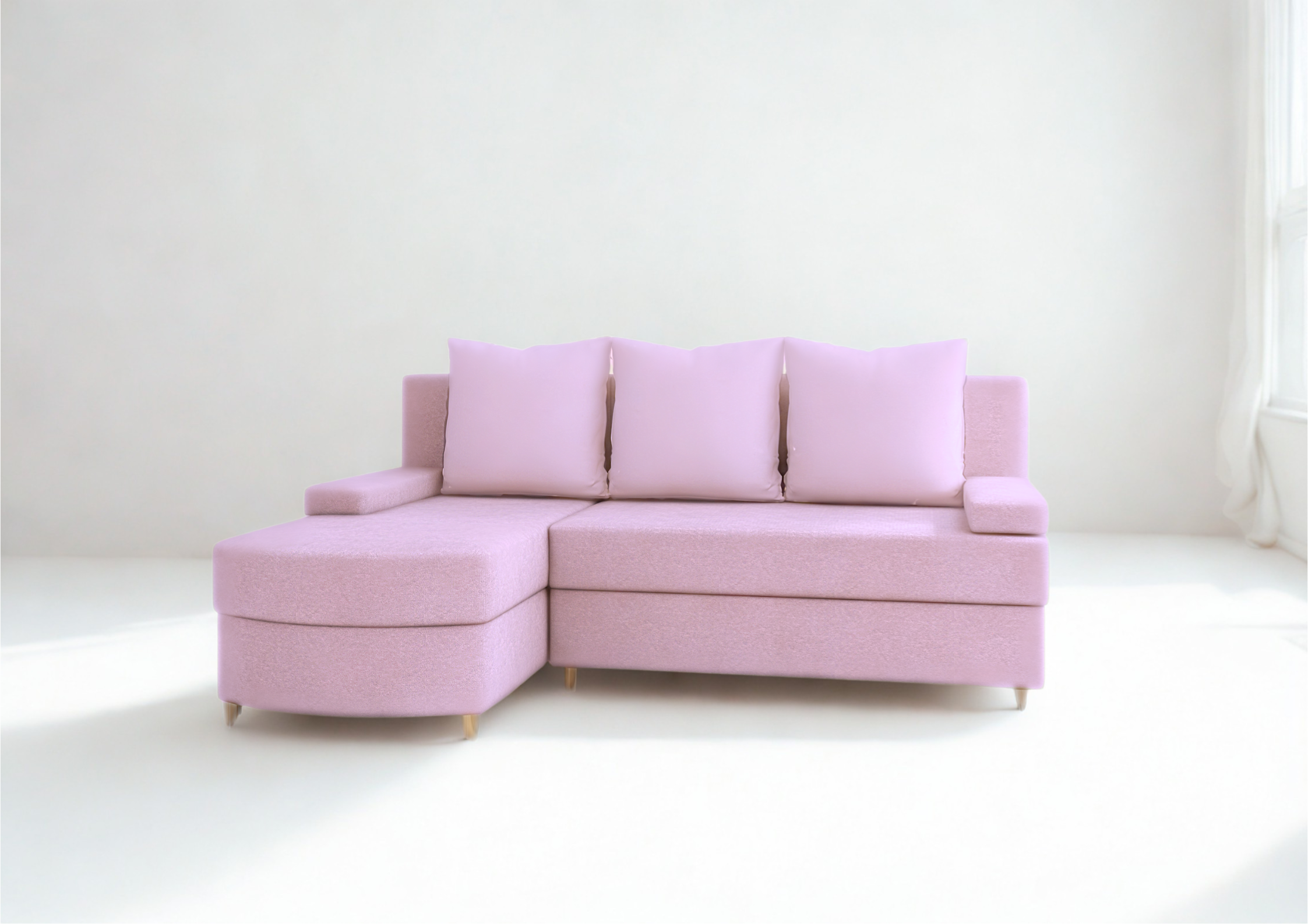 Narożnik Rozkładany Lewostronny HELIOS Różowy Funkcja Spania Salon