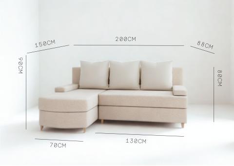 - Narożnik rozkładany z funkcją spania, który idealnie nada się zarówno do małego pokoju w bloku jak i w większych pomieszczeniach.