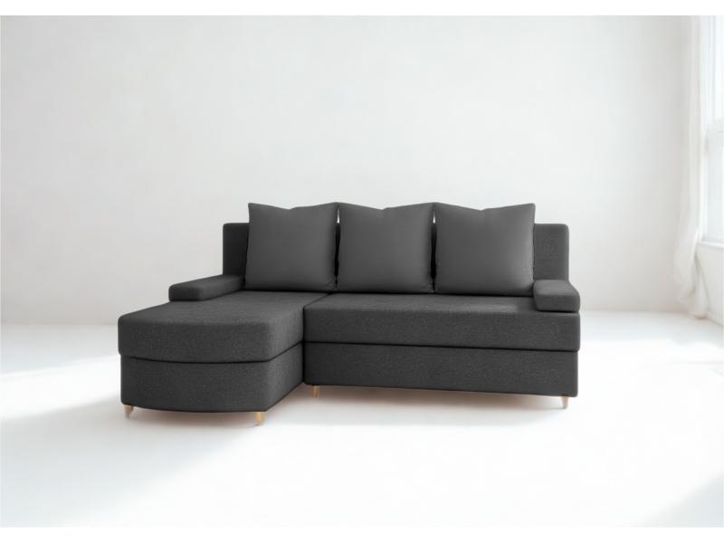Narożnik Rozkładany Lewostronny HELIOS Czarny Funkcja Spania Salon