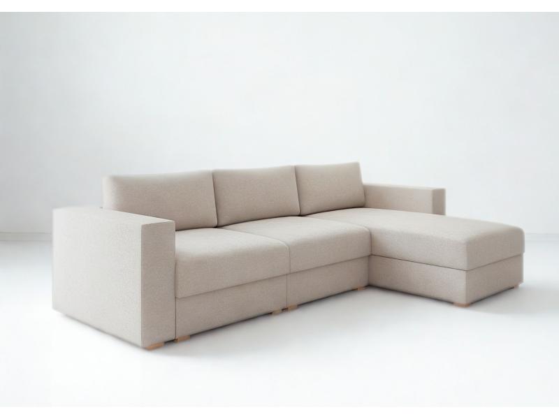 ⭐️Narożnik LIFE Prawy Beżowy Rozkładany Funkcja Spania Schowek Salon