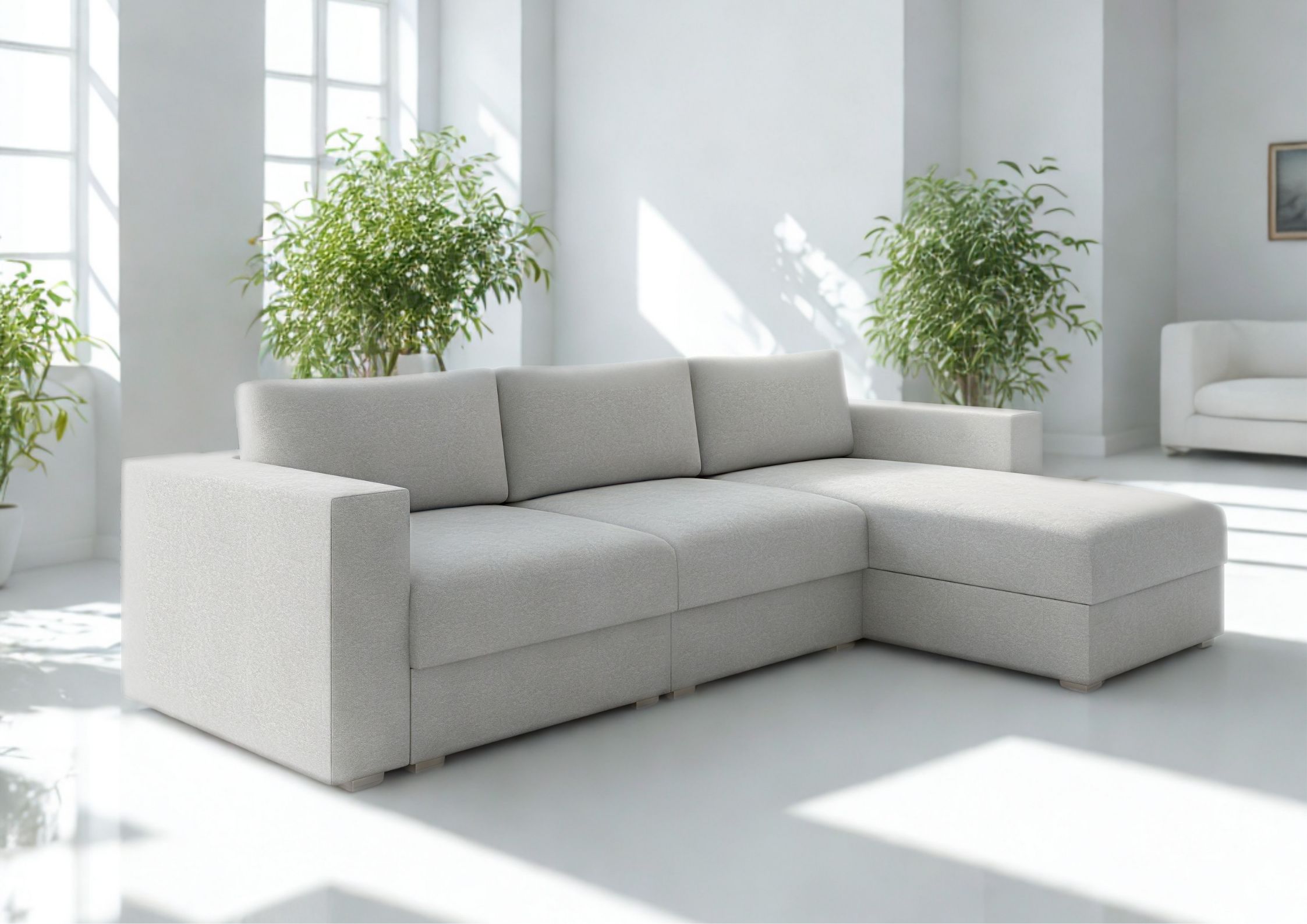 Narożnik LIFE jest propozycją dla osób poszukujących dużego mebla i preferujących nowoczesny design. Narożnik posiada funkcję spania oraz praktyczny pojemnik na pościel co sprawia, że można szybko przekształcić go w wygodne łóżko.