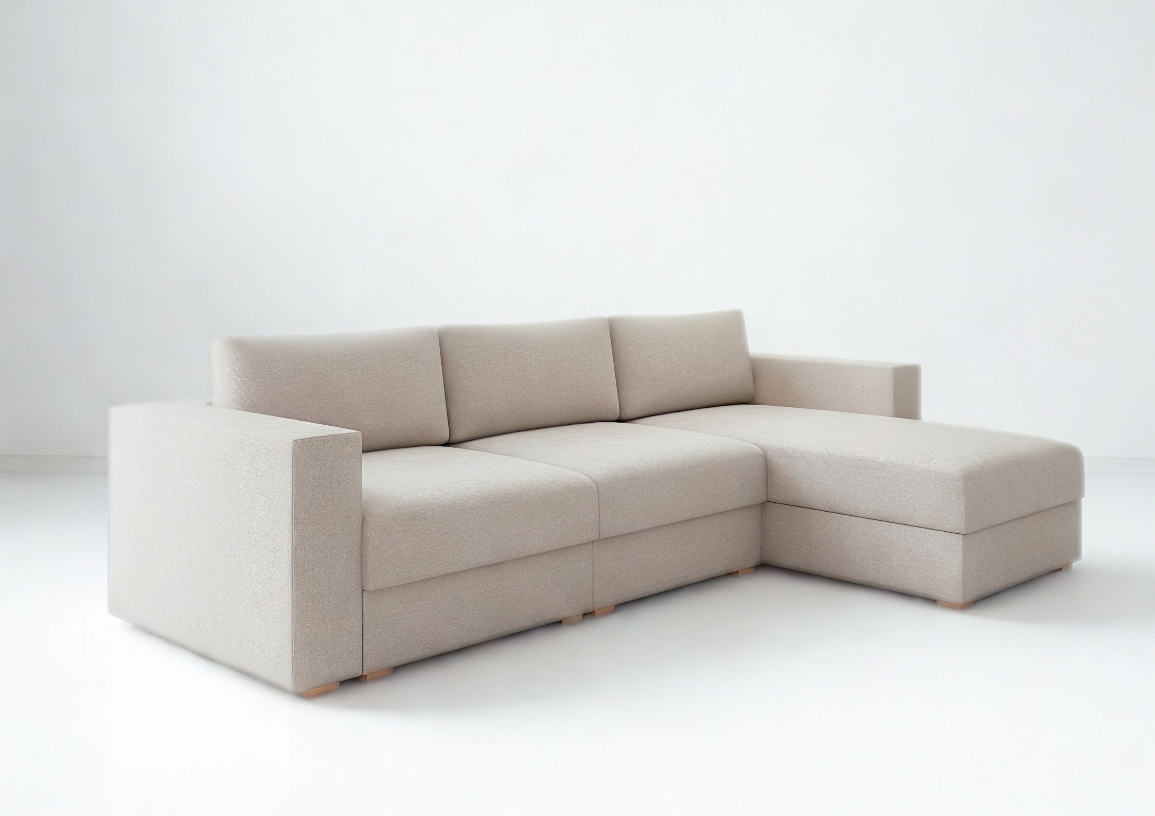 Narożnik Rozkładany Prawostronny LIFE Beżowy Funkcja Spania Schowek Salon