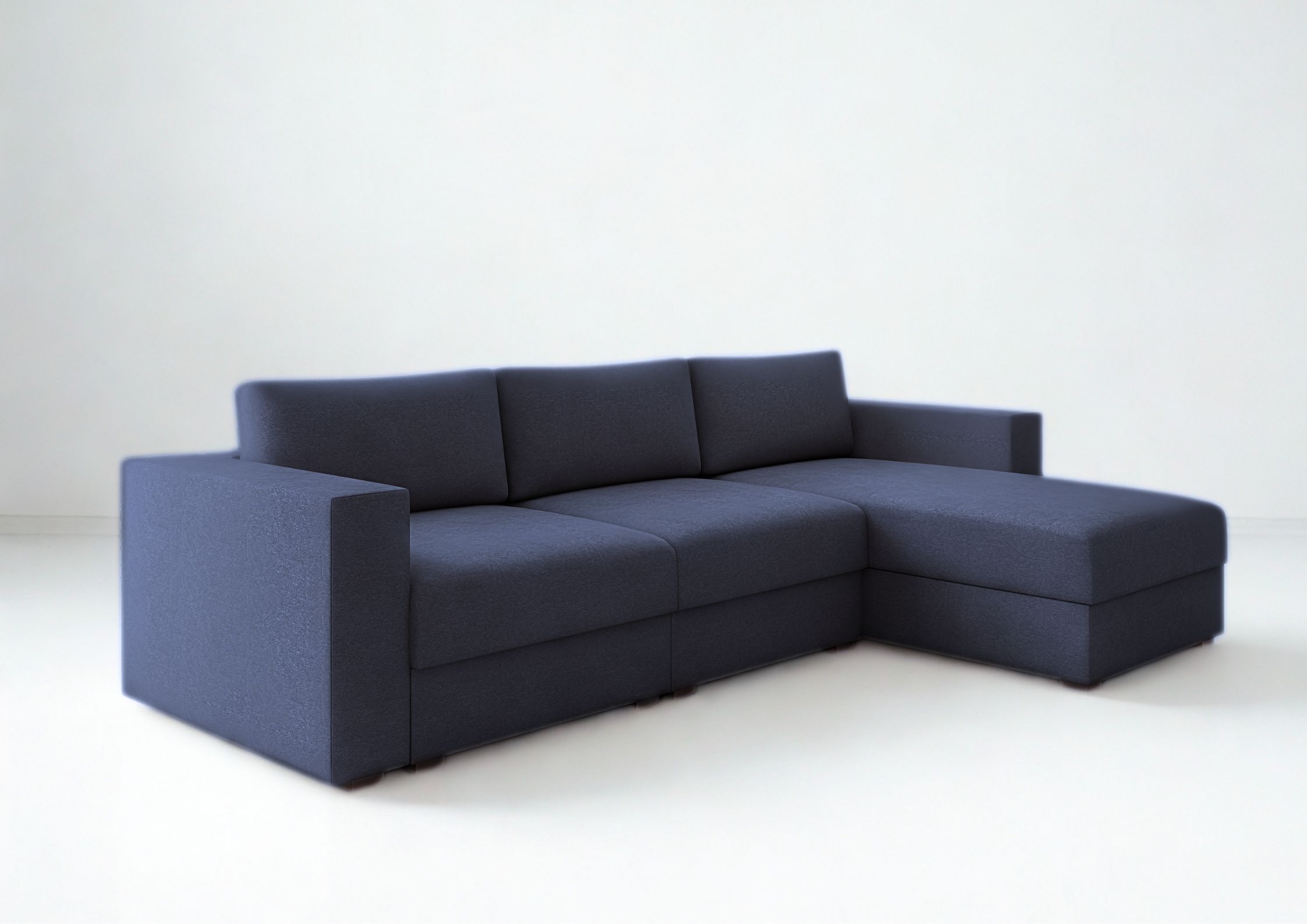 Narożnik Rozkładany Prawostronny LIFE Granatowy Funkcja Spania Schowek Salon