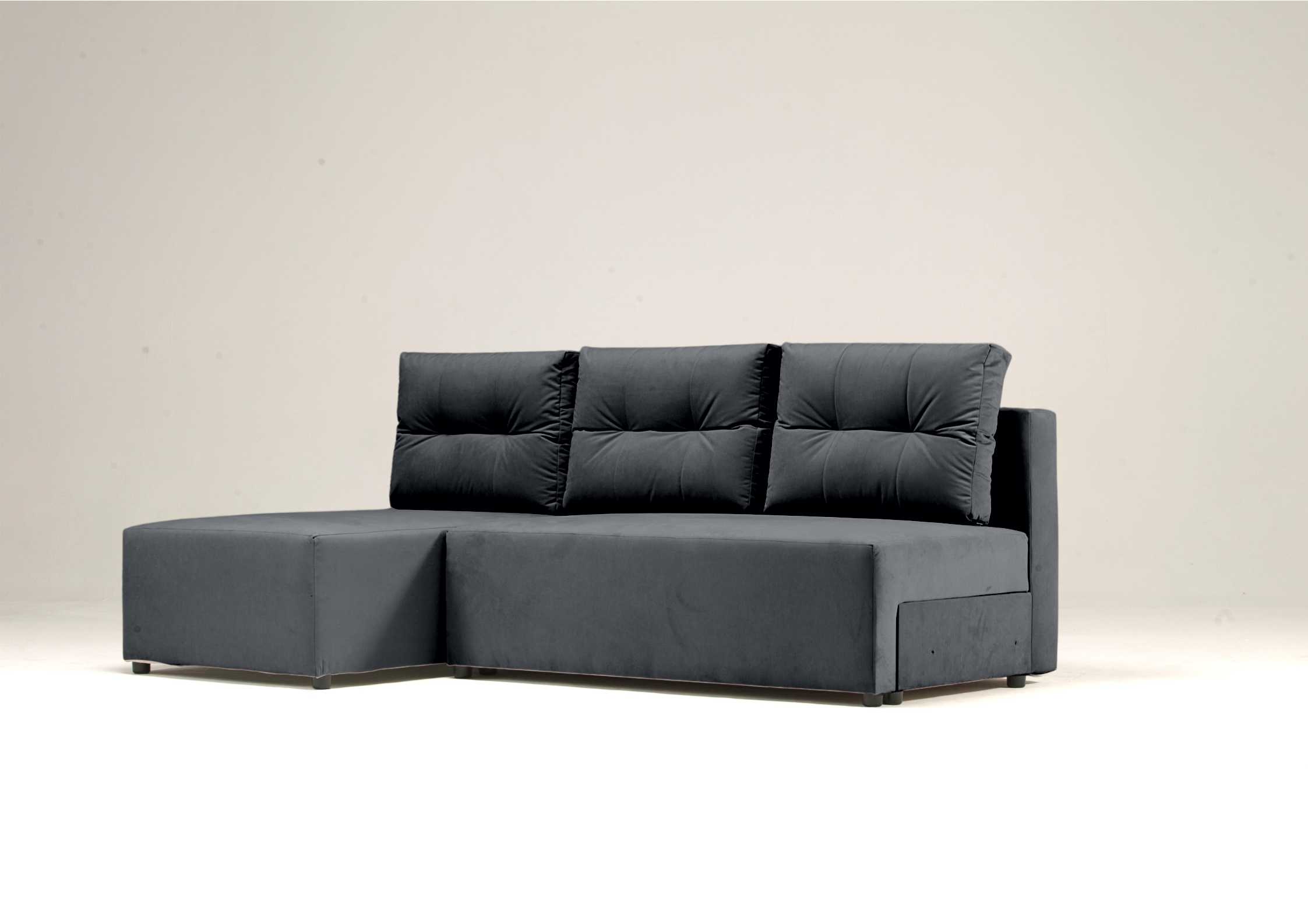 Narożnik Rozkładany Lewostronny PONO Grafitowy Funkcja Spania Salon Wygodny
