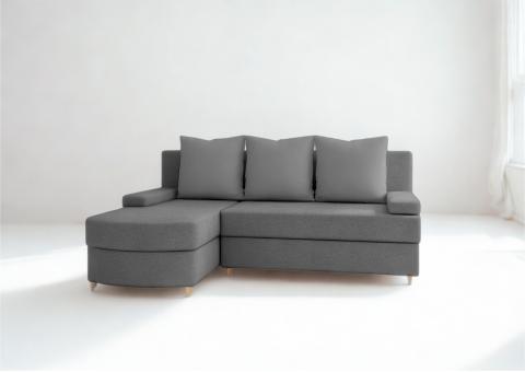 - Narożnik rozkładany z funkcją spania, który idealnie nada się zarówno do małego pokoju w bloku jak i w większych pomieszczeniach.