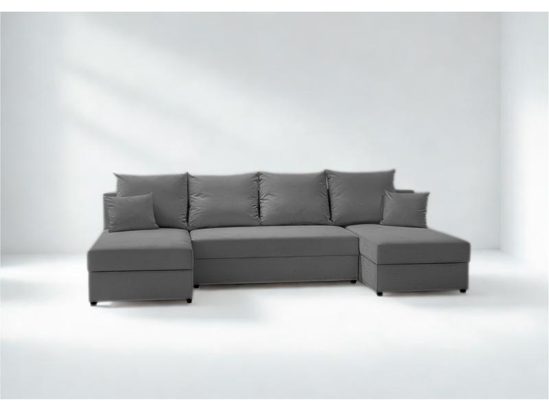 Duży narożnik do salonu PACO U w kształcie litery "U" to idealna propozycja dla tych, którzy szukają dużego mebla, zdolnego pomieścić całą rodzinę i przyjaciół podczas wspólnych spotkań. Narożnik posiada dużą funkcję spania.